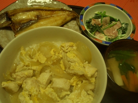 親子丼は彼へのリベンジメニューです♪ 大学時代、作るといって豪語したものの、 できあがたのは味のほとんどないスクランブルエッグといった感じのもの…。 あれから、数年たち、私も少しは進歩したかな。 彼に大好評でした♪ 2007/1/28のお夕飯